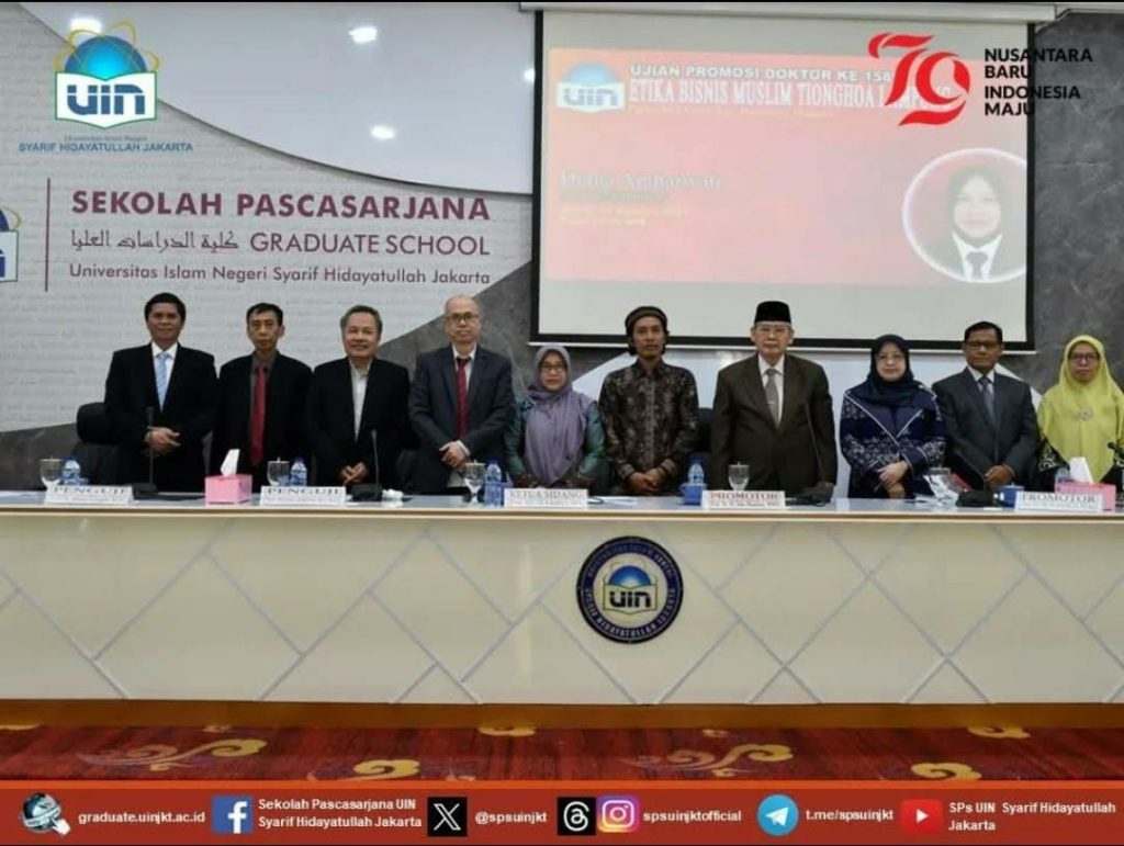 Dr. Diana Ambarwati berhasil mempertahankan disertasinya di hadapan dewan penguji yang terdiri dari para akademisi terkemuka: Prof. Dr. Zulkifli, MA; Prof. Dr. M. Atho Mudzhar, MSPD; Prof. Euis Amalia, M.Ag; Prof. Dr. Desmandi Saharuddin, MA; Prof. Dr. M. Ikhsan Tanggok, M.Si; Prof. Jajang Jahroni, MA, Ph.D; dan Prof. Dr. Kamarusdiana, MH. Penelitian ini dilakukan di bawah bimbingan Prof. Dr. M. Atho Mudzhar, MSPD; Prof. Euis Amalia, M.Ag; dan Prof. Dr. Desmandi Saharuddin, MA. Seluruh sivitas akademika menyampaikan selamat atas capaian ini dan berharap kontribusi keilmuan Diana dapat memperkuat pengembangan studi etika bisnis di Indonesia.