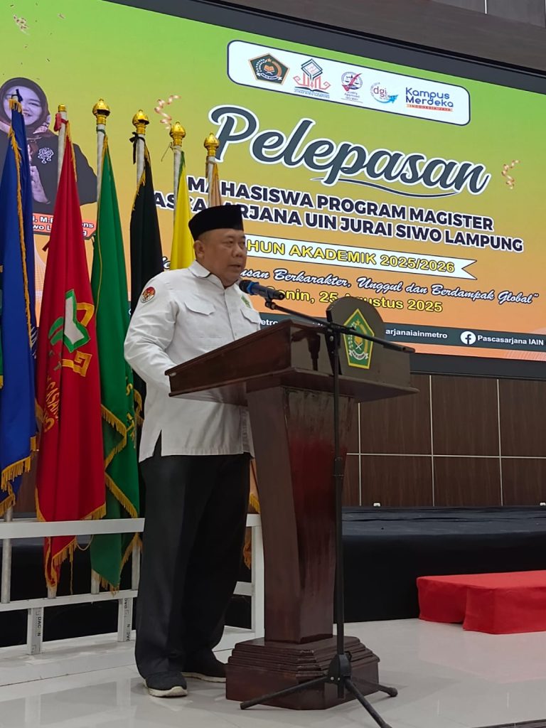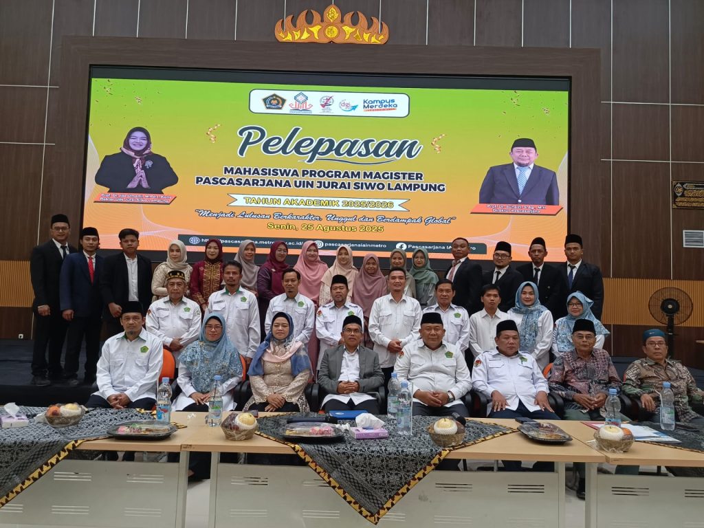 Metro, Senin 25 Agustus 2025 – Pascasarjana Universitas Islam Negeri (UIN) Jurai Siwo Lampung menggelar acara pelepasan mahasiswa program magister di Gedung Academic Center (GAC). Kegiatan yang berlangsung khidmat ini menjadi momen penting sekaligus bersejarah bagi mahasiswa yang telah menuntaskan studi pascasarjana. Pelepasan bukan hanya penanda berakhirnya masa belajar di kampus, tetapi juga simbol awal pengabdian baru di tengah masyarakat dengan membawa identitas akademik UIN Jurai Siwo Lampung.