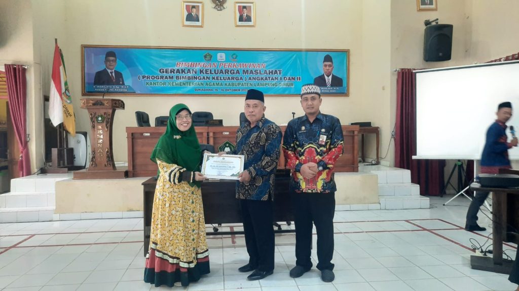 Lampung Timur — Pascasarjana UIN Jurai Siwo Lampung terus mengukuhkan perannya sebagai kampus yang tak hanya berfokus pada pengembangan ilmu, tetapi juga pengabdian masyarakat yang berorientasi pada nilai-nilai Islam rahmatan lil ‘alamin. Melalui kegiatan bertajuk “Gerakan Keluarga Maslahah: Program Bimbingan Keluarga Angkatan I dan II”, para dosen turun langsung membimbing 50 pasangan muda di Kabupaten Lampung Timur selama dua hari, 15–16 Oktober 2025, bertempat di aula Kantor Kemenag Lampung Timur.