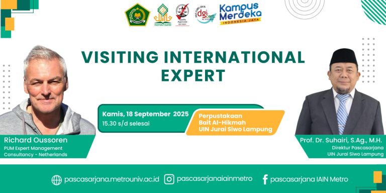 Metro (19/09/25) – Program Studi Magister Ekonomi Syariah Pascasarjana UIN Jurai Siwo Lampung sukses menyelenggarakan kegiatan Visiting International Expert pada Kamis, 18 September 2025. Acara yang berlangsung di ruang pertemuan Perpustakaan Bait al-Hikmah ini menghadirkan Richard Oussoren, pakar manajemen dari…